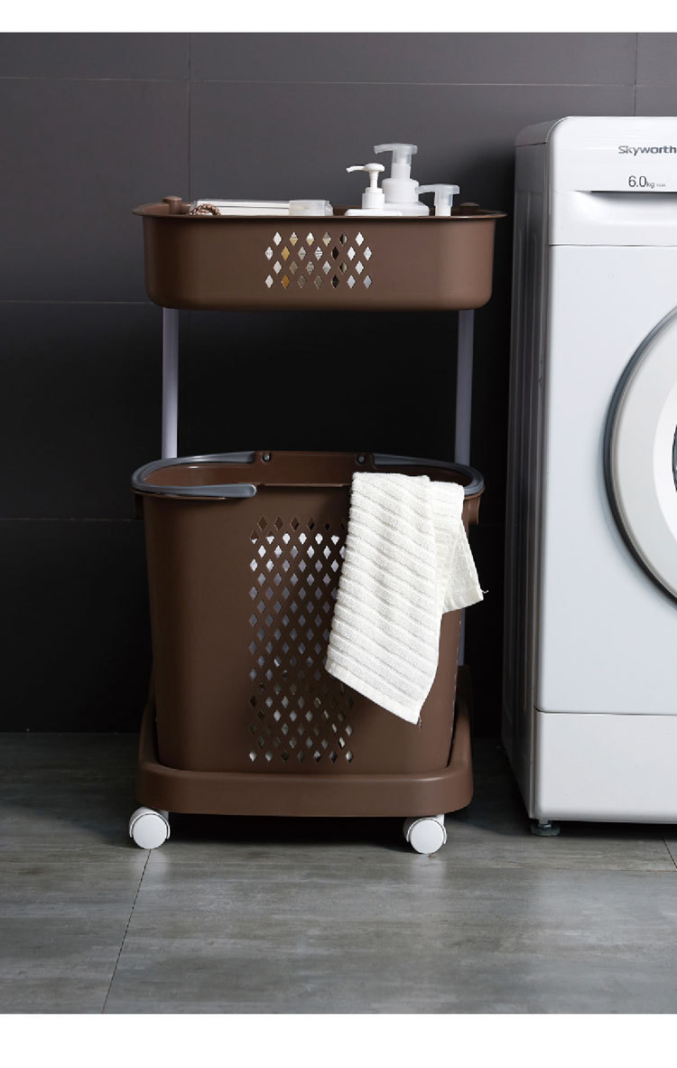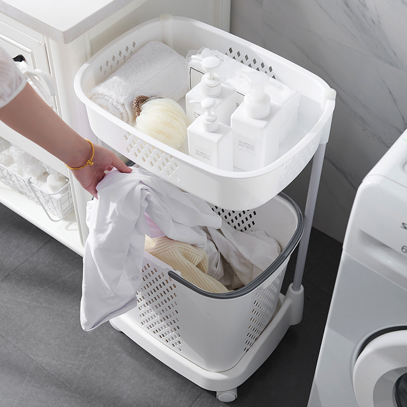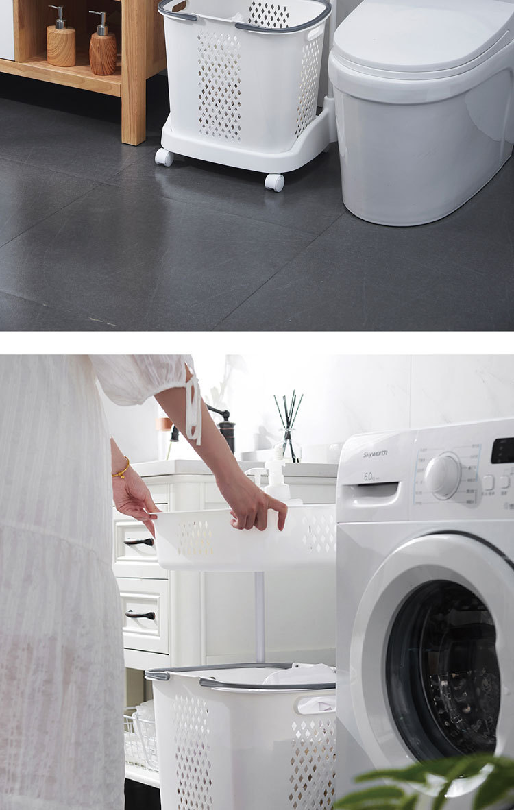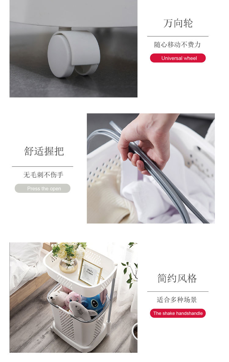 厂家直销大号三层脏衣篮 浴室塑料脏衣收纳篮 多功能带滑轮储物篮